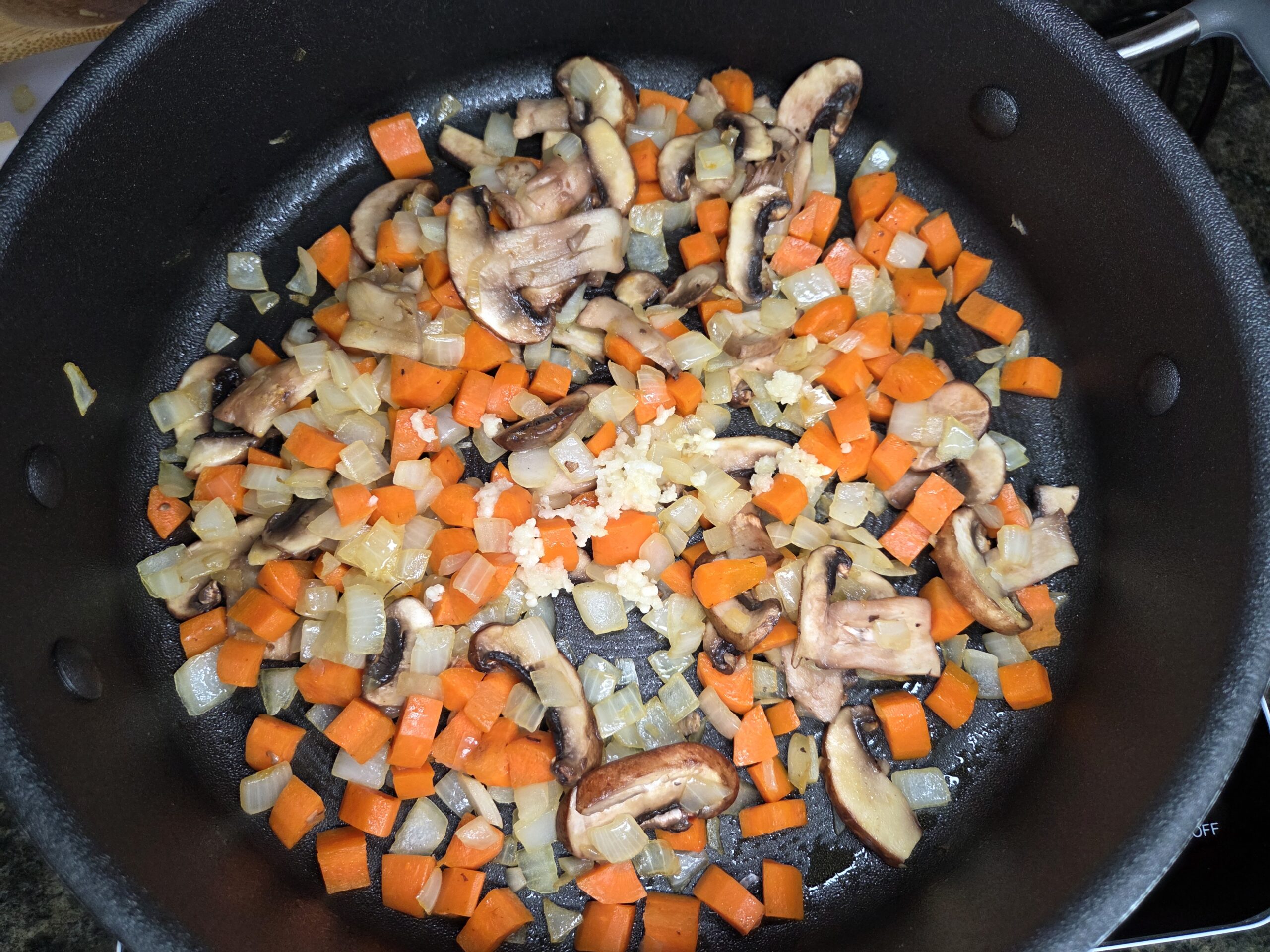 Stir in 4 minced garlic cloves and cook for 1–2 minutes, just until fragrant. Then transfer all the vegetables to a bowl and set aside. There’s no need to wipe out the skillet — the flavorful bits left behind will enrich the beef as it cooks.