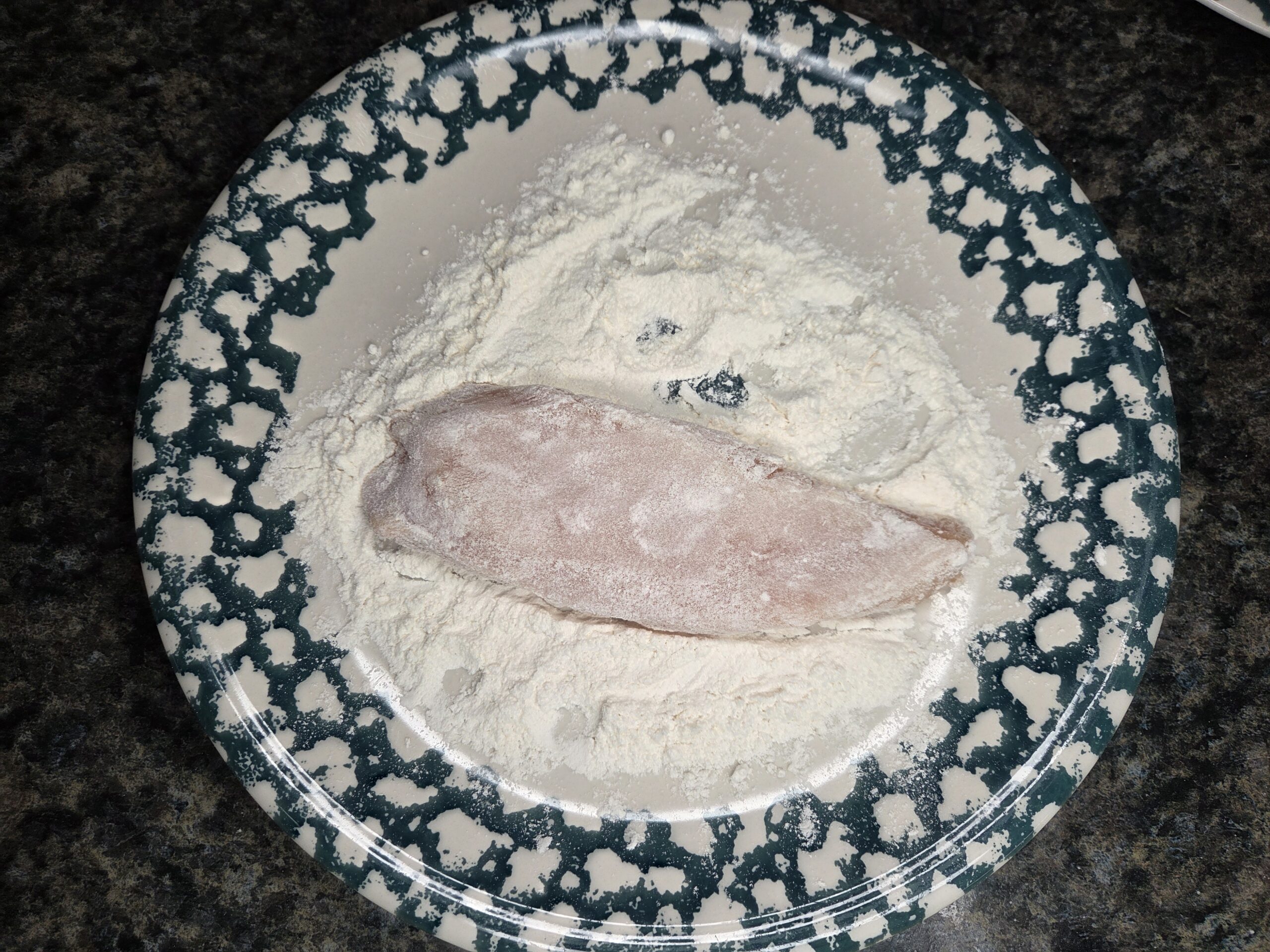 Once floured, place the chicken in the skillet and cook for 3–4 minutes per side, until golden brown. Remove the chicken from the pan and set it aside.