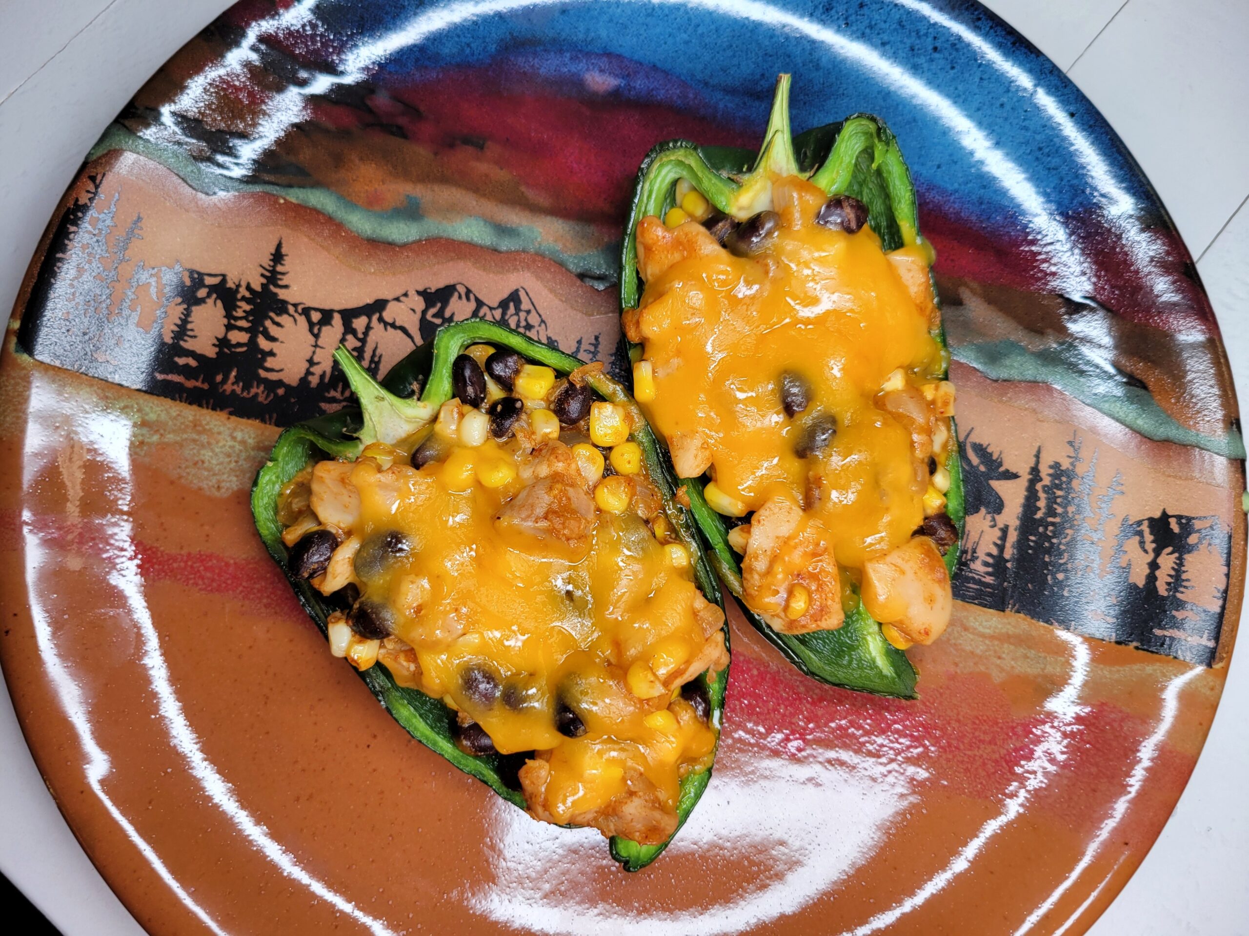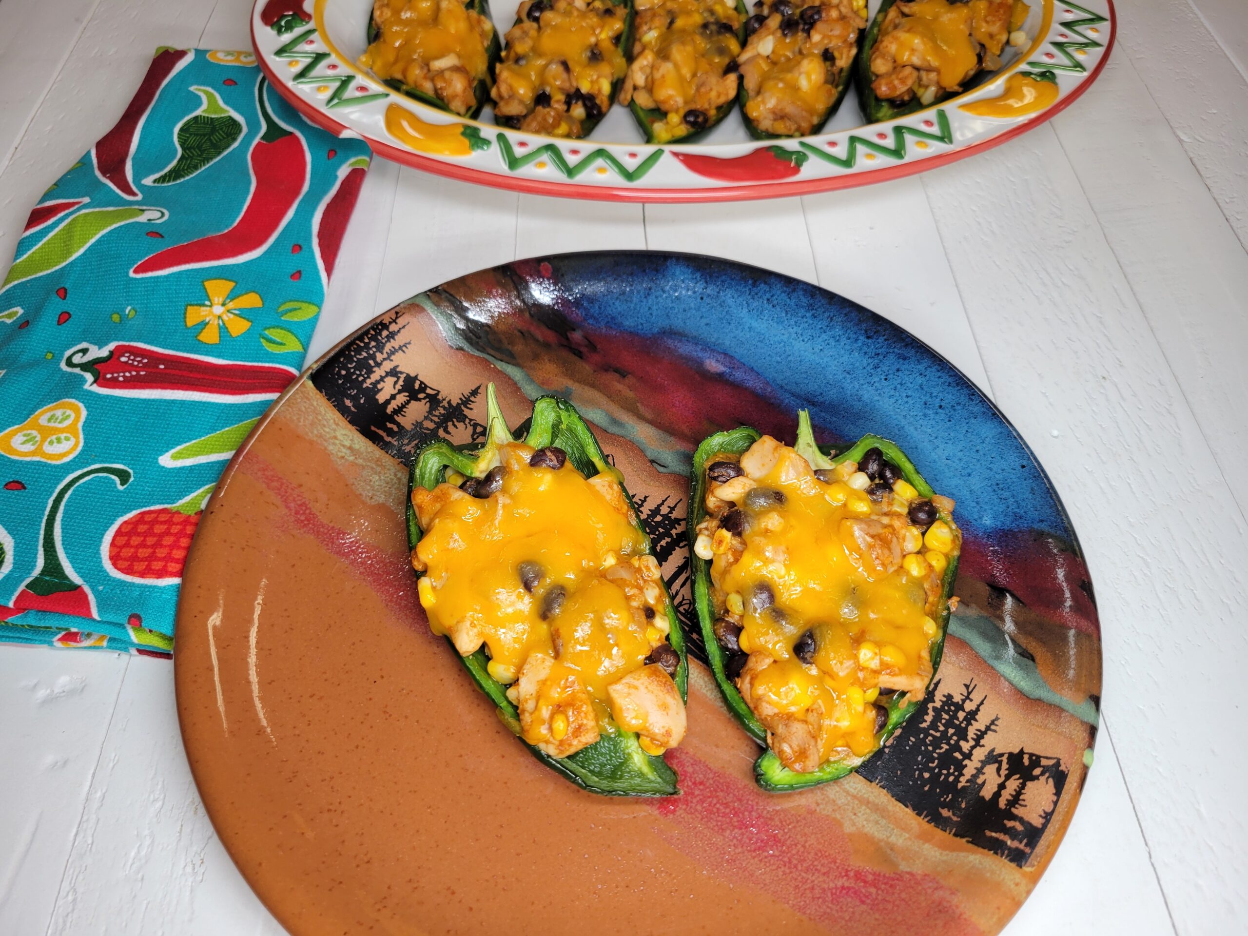 Southwest-seasoned chicken, cheese, corn, black beans, and onions stuffed into flavorful poblano peppers.