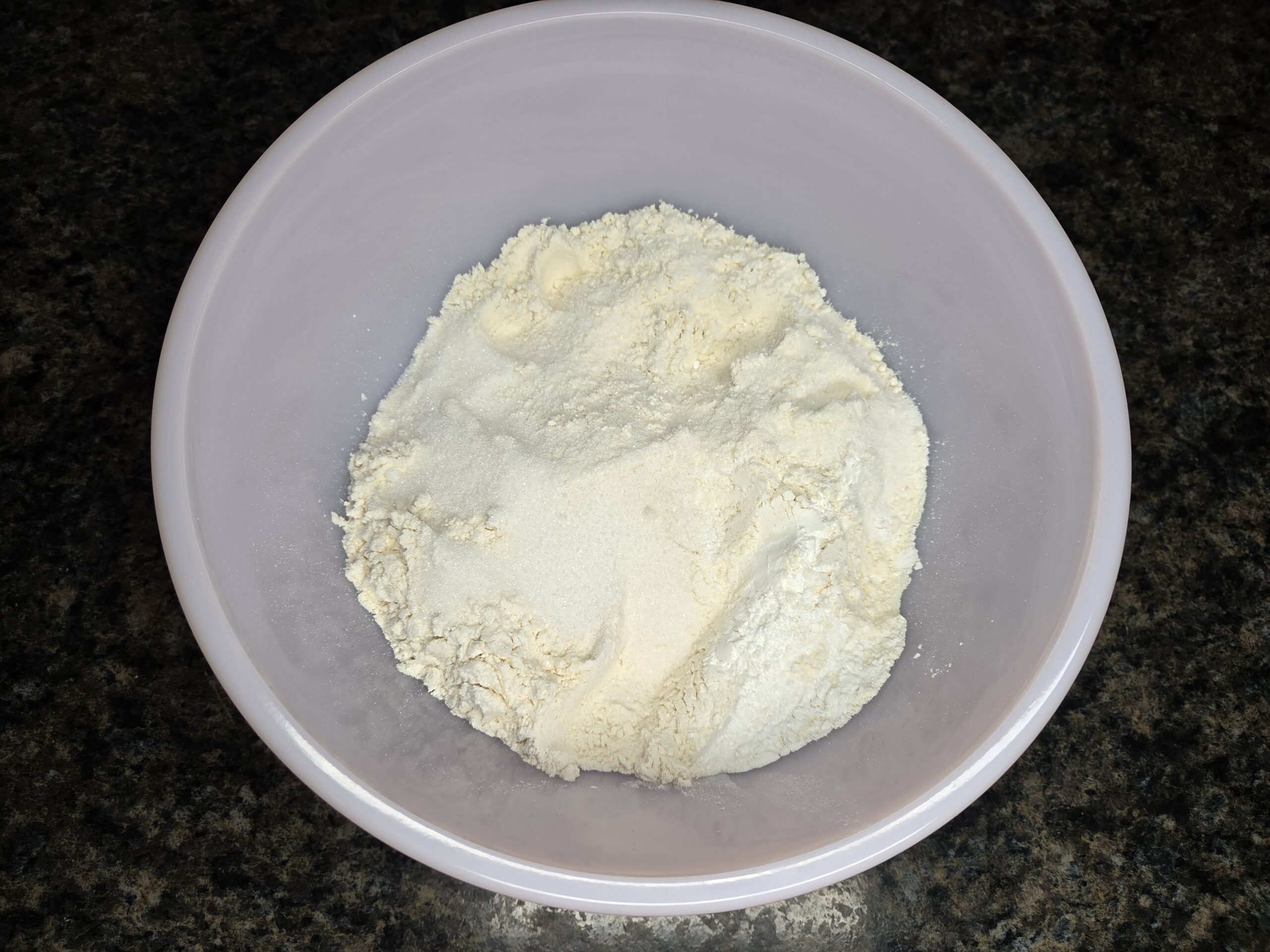 Line a baking sheet with parchment paper. In a large bowl, mix the dry ingredients: 2 cups all-purpose flour, 1/2 cup granulated sugar, 1 tablespoon baking powder, and 1/2 teaspoon salt.