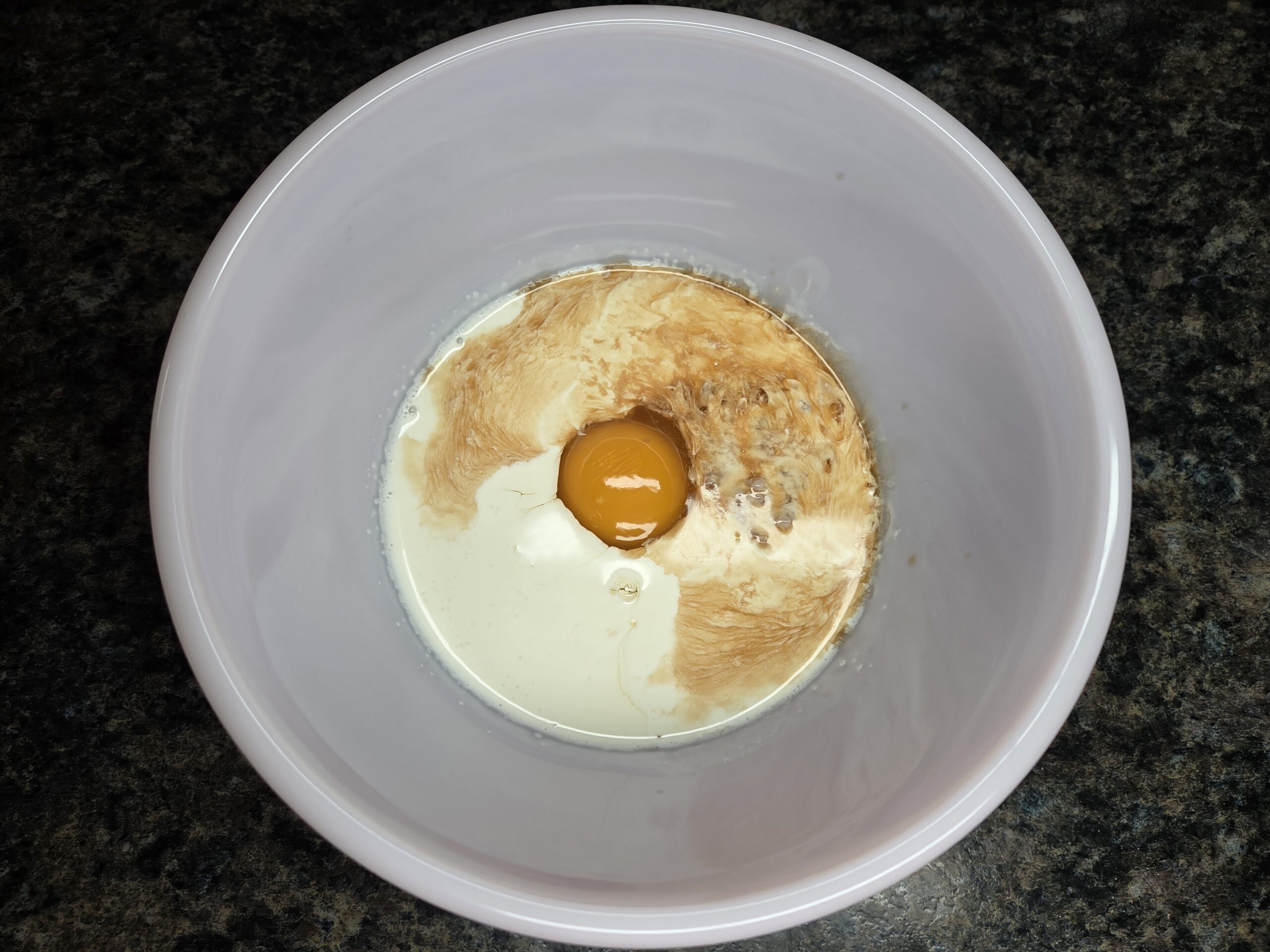 In a separate medium bowl, mix the wet ingredients—½ cup heavy whipping cream, 1 large egg, and 1 teaspoon vanilla extract—whisking until fully combined.