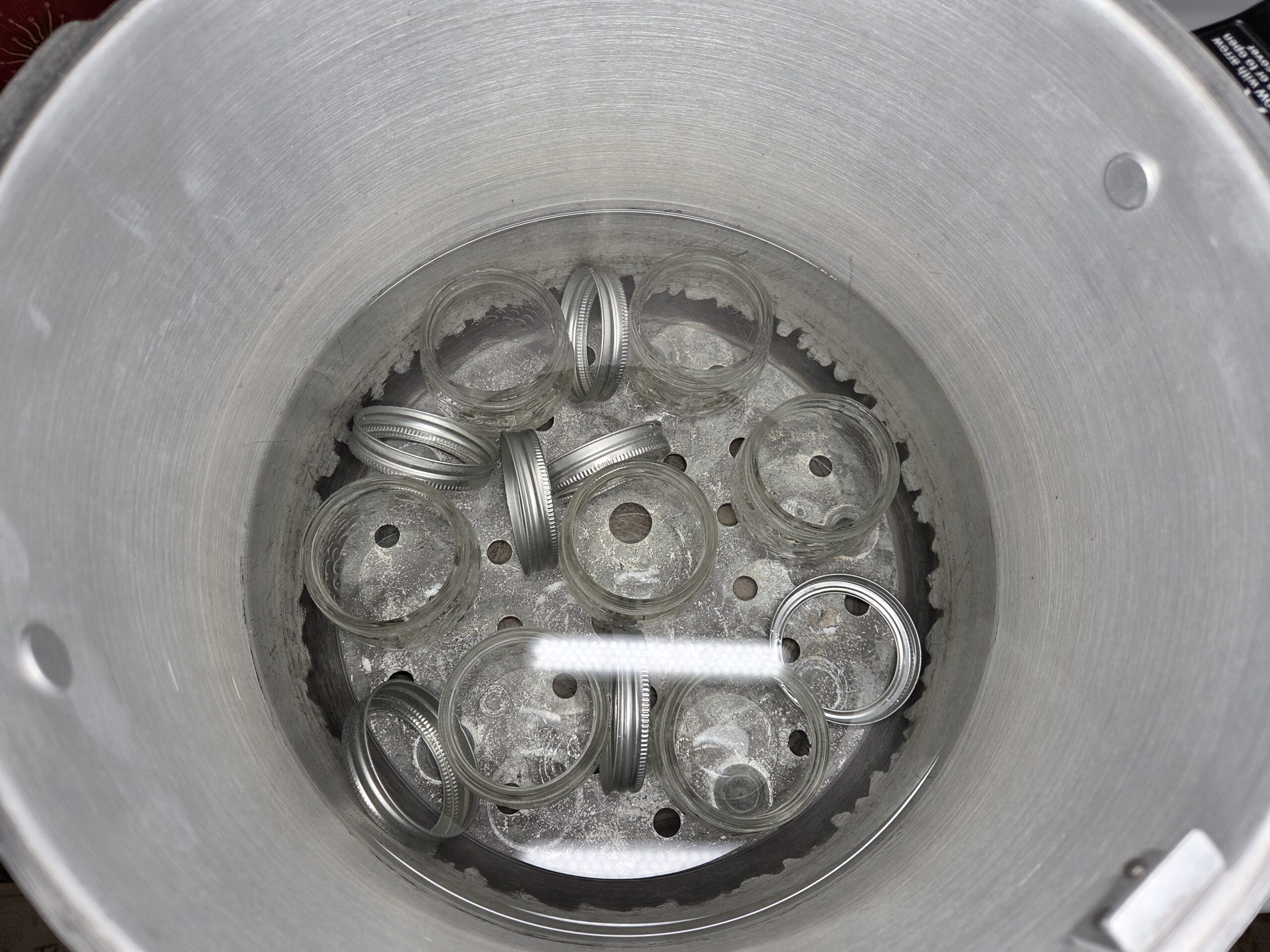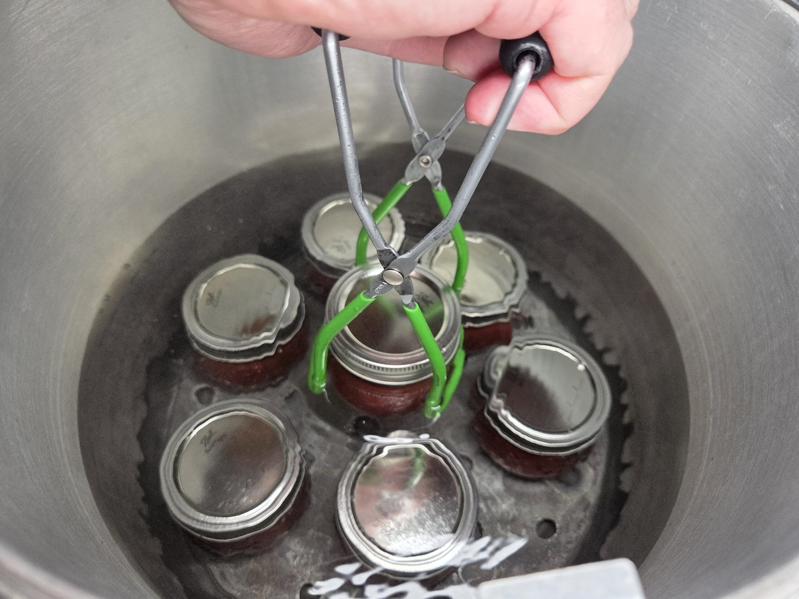 Place lids and bands on jars and finger tighten. When placing jars into the water bath canner, avoid tilting them, as this can disrupt their seal before the canning process even starts, potentially causing spillage on the jar rims.