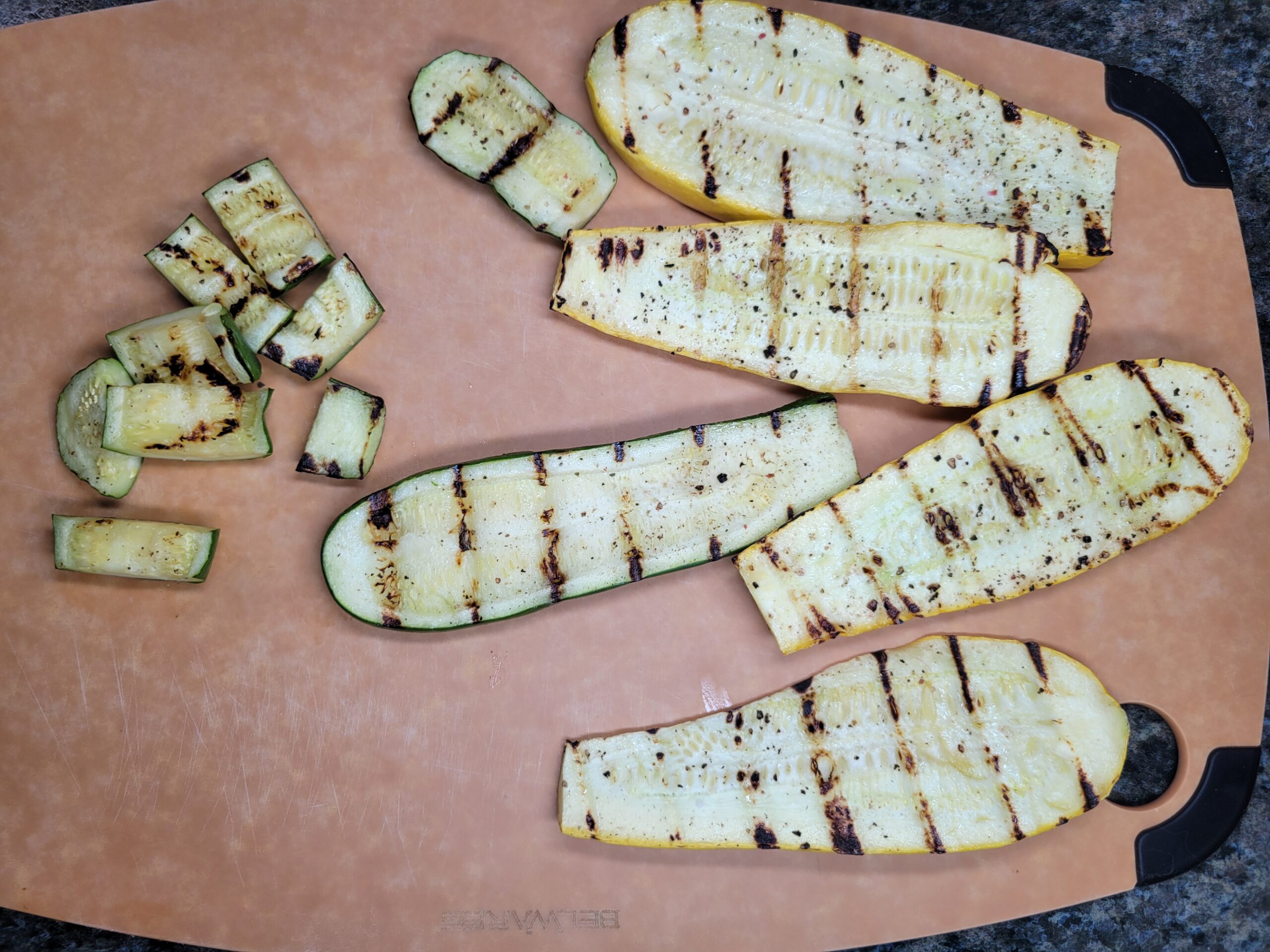 Cut the grilled squash into your preferred sizes and toss them into a large serving bowl.