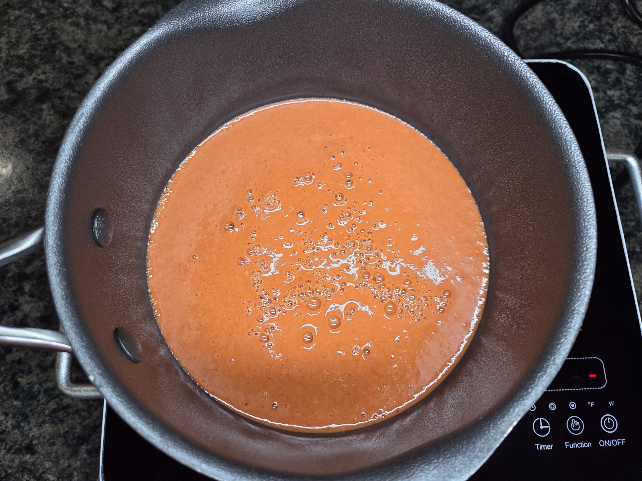 Make the enchilada sauce or skip ahead to Step 2 if you already have a favorite sauce on hand. If you’re making it from scratch, everything comes together right in the blender, which makes the process surprisingly quick. Add 2 cups of vegetable broth, a 15‑ounce can of tomato sauce, 3 tablespoons of chili powder, 1/2 teaspoon of cumin, 1 garlic clove, 1/2 teaspoon of red wine vinegar, 2 tablespoons of vegetable oil, 4 tablespoons of all‑purpose flour, and a good pinch of salt and pepper. Blend on high until the mixture is completely smooth and silky. Pour the blended sauce into a medium saucepan and warm it over medium heat. As it heats, it will start to thicken — just give it an occasional stir to keep it smooth. Let it simmer for about 10 minutes, or until it reaches the consistency you like. Once it’s ready, set it aside while you move on to the next step.