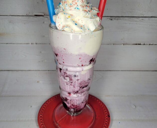 Olde Tyme Soda Fountain Style blueberry Ice Cream Soda.