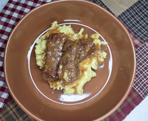 One-pot boneless beef ribs, slow-braised to melt-in-your-mouth perfection in a rich, savory gravy.
