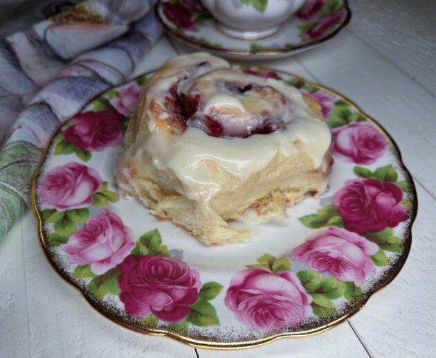 Soft Raspberry Rolls with Vanilla Cream Cheese Frosting