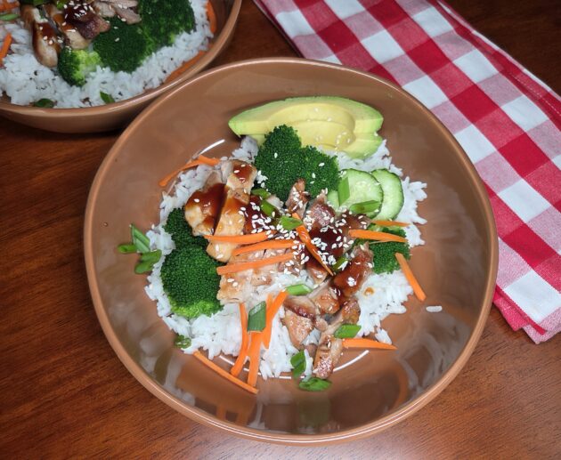 Delicious and easy Teriyaki Chicken Bowls made with vibrant veggies, warm rice, juicy chicken, and a flavorful sauce.