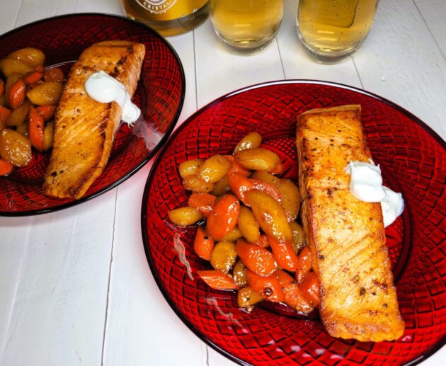 Salmon with Dill Crema & Carrots with Whiskey