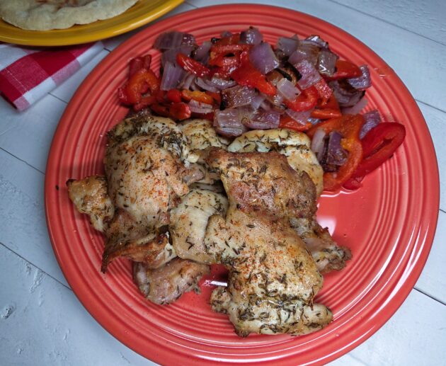 A delicious, quick, and easy meal featuring juicy, seasoned chicken and colorful, healthy vegetables!