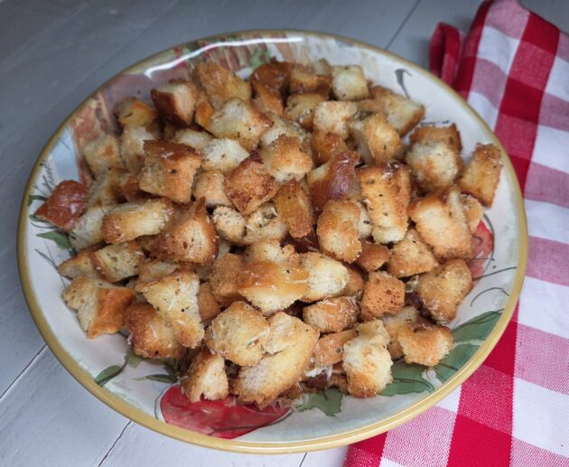 Bold, buttery, and delightfully crisp, Parmesan Garlic Steakhouse Croutons bring a gourmet crunch to every bite, making them an ideal addition to salads, soups, or